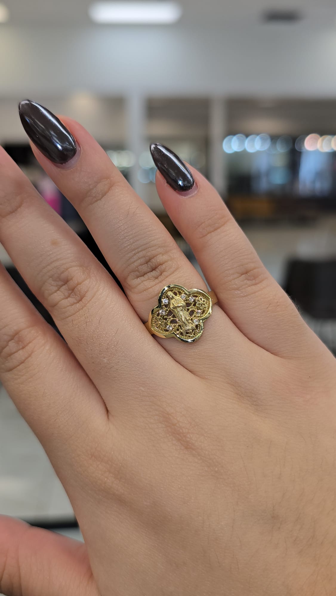 Virgen de Guadalupe Clover Ring – 10K Gold